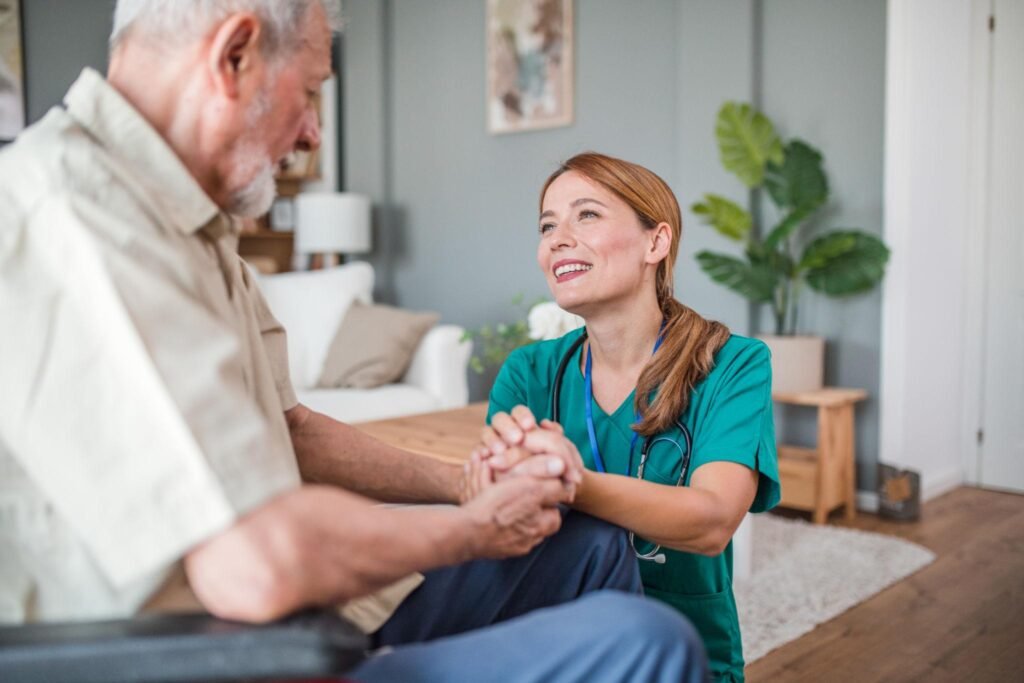 In late-stage dementia, verbal communication may become very limited or disappear altogether. Families sometimes worry that connection is lost — but meaningful communication continues through presence and touch.